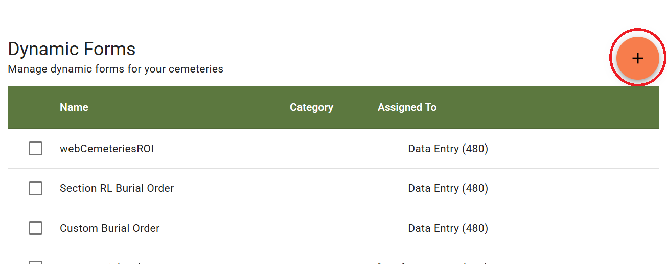 Click the orange "+" button to add a new form or if you are adding an updated version of a form already in your dynamic forms list.