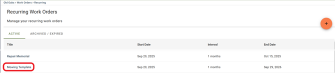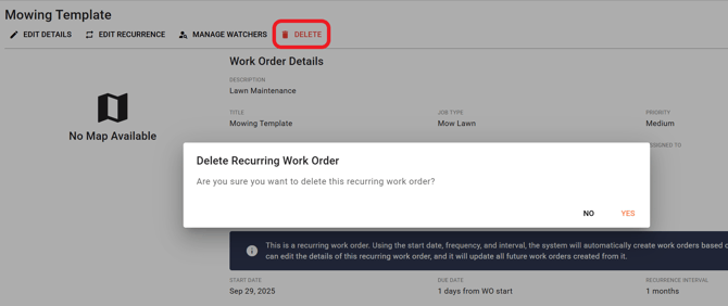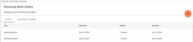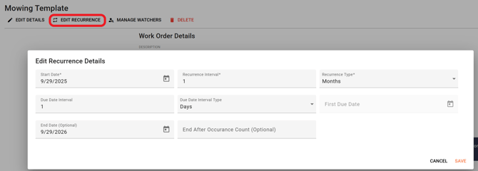 Once you’ve created a recurring work order, you can easily manage and update it through the Manage Recurring section. This allows you to adjust work order details, recurrence schedules, resources, and tasks without having to start over.