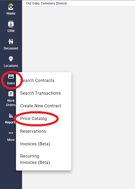 Hover over the "Sales" icon on the left side menu and select "Price Catalog"